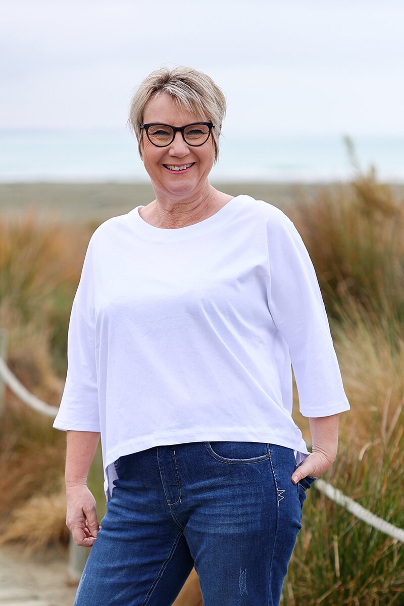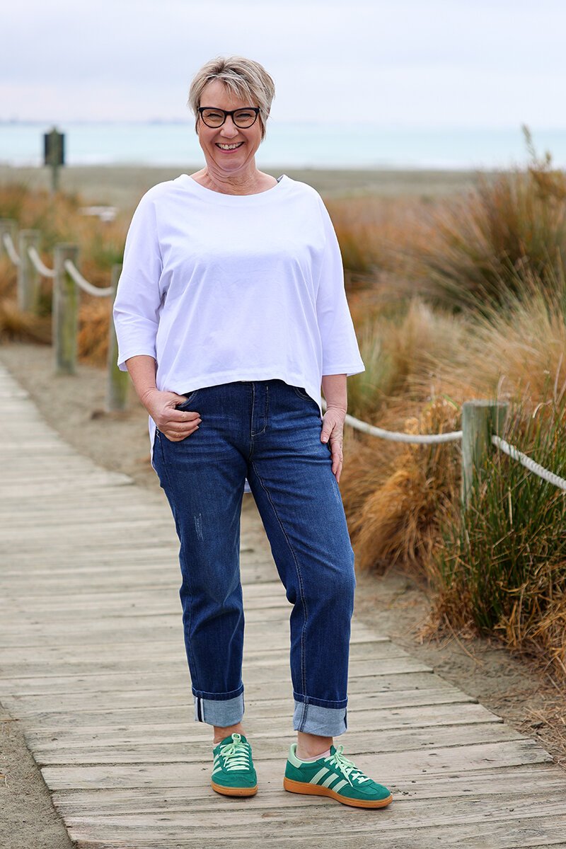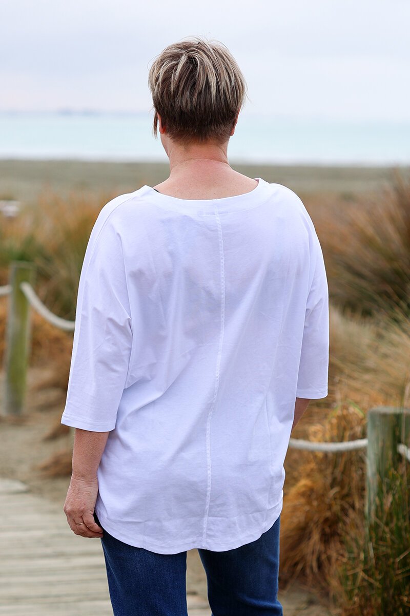 The White On Black Fav Top is the kind of tee you’ll reach for again and again. With its relaxed 3/4 sleeves, flattering crew neckline, and easy fit, it’s perfect for layering or wearing solo with your favourite jeans. A true everyday staple.