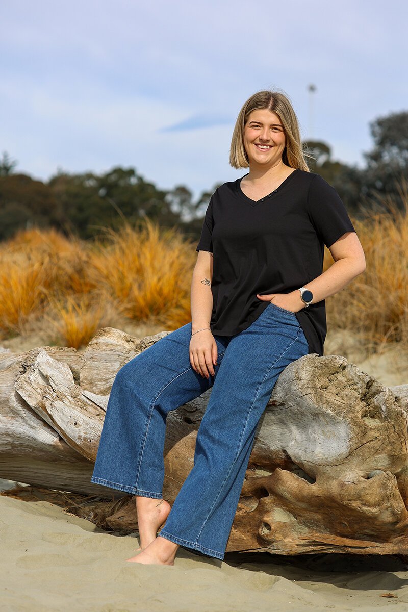 The White On Black Long Waterfall V-Neck Top is the kind of everyday piece that never lets you down. With its soft drape, flattering V-neckline with button detail, and a long waterfall hem at the back, it’s equal parts comfy and stylish. Perfect with jeans for laid-back days or dressed up with tailored pants.