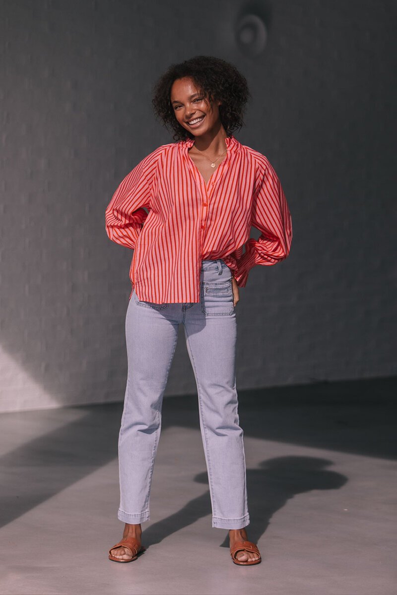 The White Poetry Racquet Club Stripe Sorrento Blouse brings a hit of playful polish to your wardrobe. Designed in a lightweight, airy fabric with statement stripes, this blouse drapes beautifully and feels amazing to wear. The relaxed fit, gathered cuffs, and button-down front make it just as easy for brunch as it is for workdays.