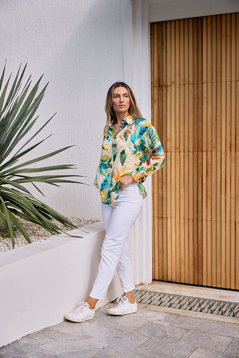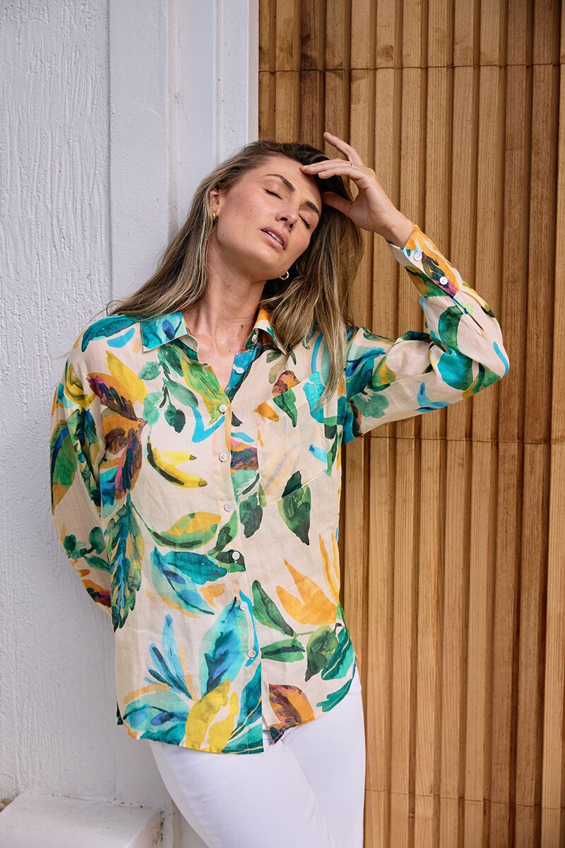 The Worthier Glide Linen Printed Shirt is one of those pieces that instantly lifts your outfit—lightweight, effortless, and just the right amount of statement. Easy with white denim.