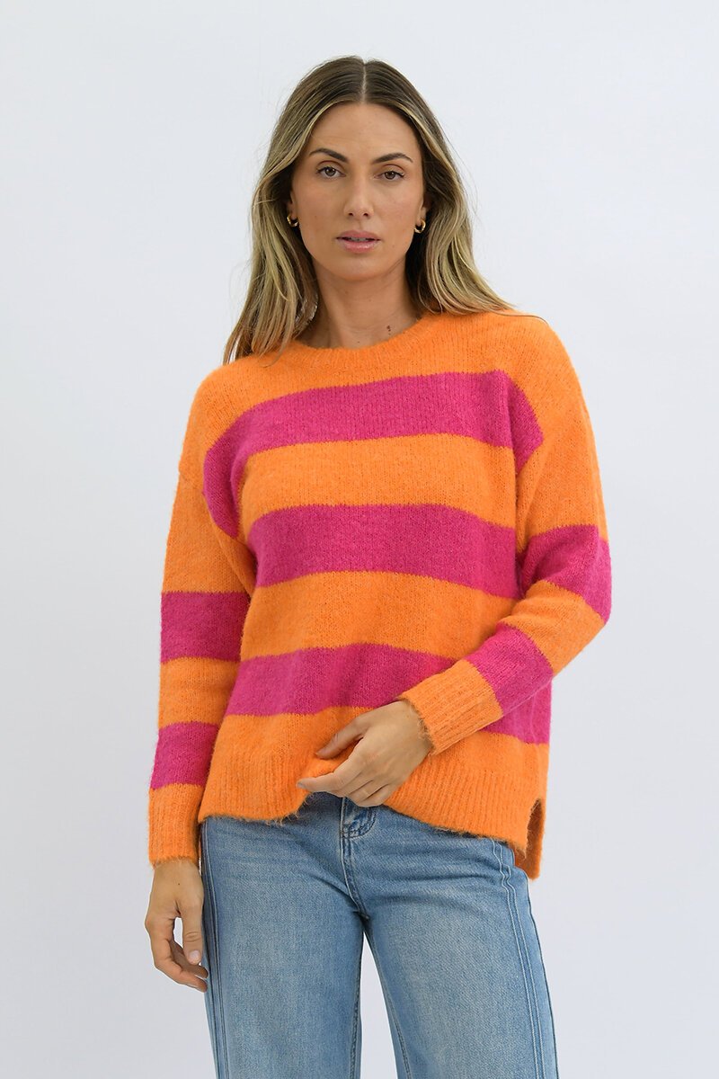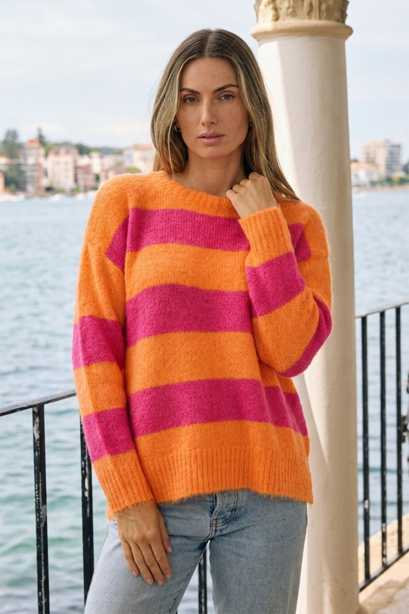 The Worthier Mika Wool Blend Relaxed Fit Stripe Knit is your instant mood-lifter—bold, bright, and impossible to ignore. Throw it on with denim and let the colour do all the work.