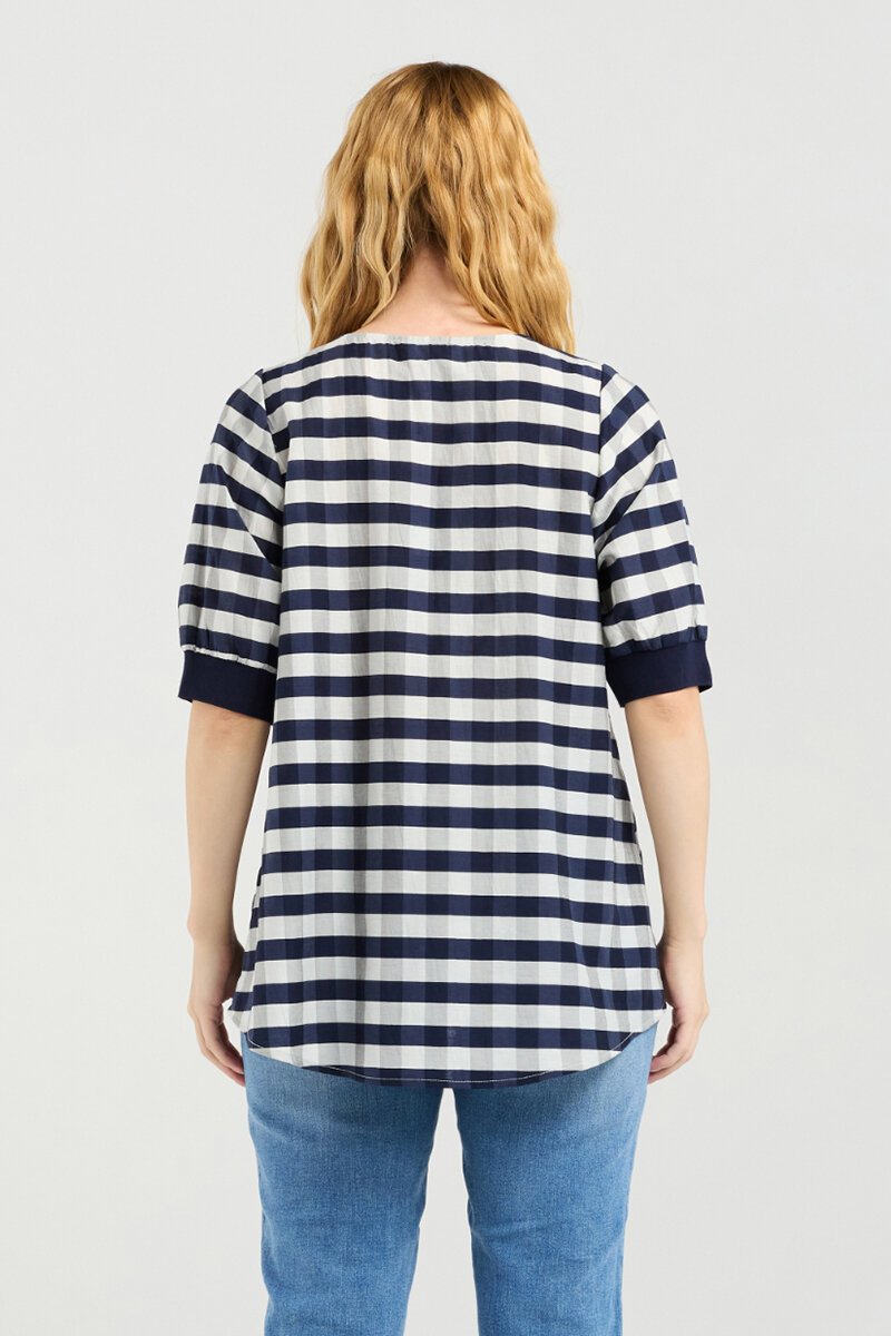 The Zafina Check Havana Top is a fresh update on a classic. With its playful check pattern, relaxed fit, and feminine detailing, it’s an easy piece to style up or down. Pair with denim, skirts, or tailored pants for everyday chic.