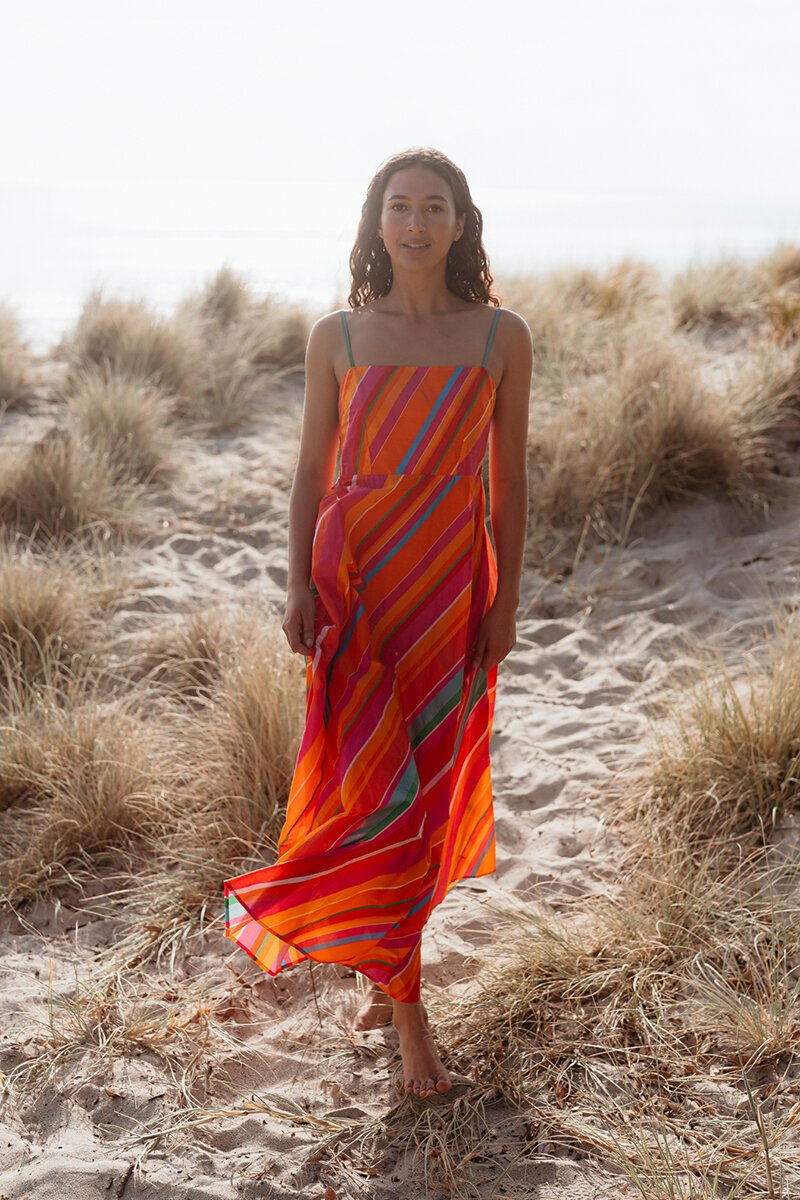 The Zafina Clementine Dress is made for sunshine. With its bright stripes and easy summer silhouette, it’s a style that feels fresh, fun, and ready for warm days. Just add sandals and a tote for an effortless holiday look.